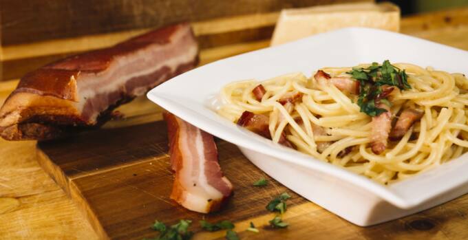 Para elaborar esta receta necesitarás guanciale, queso parmesano rallado, nata para cocinar, una cebolla grande, aceite de oliva virgen, pimienta negra molida y sal.