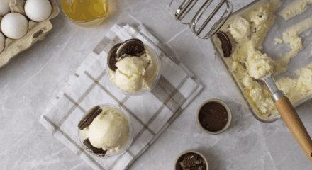 Después de este tiempo, tu mousse habrá cogido consistencia y estará lista para presentar en el recipiente que elijas. Una buena opción es servirla en raciones individuales utilizando vasitos de cristal.